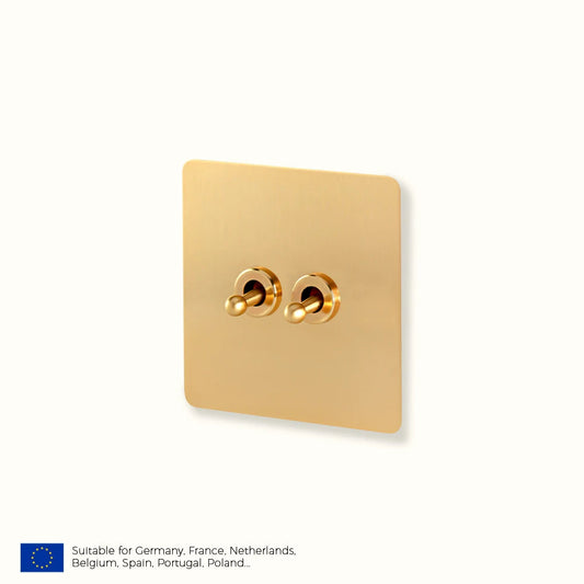 Prises et interrupteurs design à bascule en acier inoxydable doré effet brossé SXS12